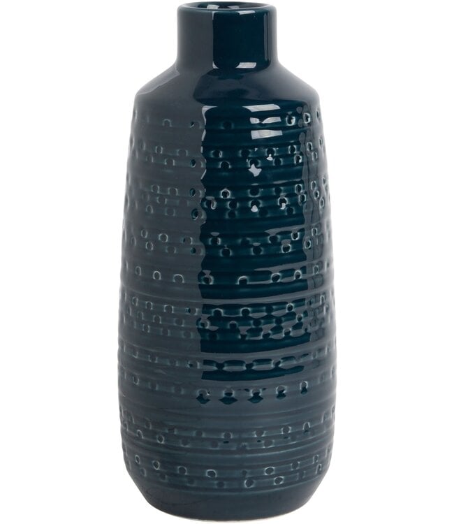Elevate your décor with this striking ceramic vase, designed with a tall, refined silhouette and detailed textured patterning that adds depth and dimension. Finished in a rich, high-gloss deep blue glaze, it brings a sophisticated and modern touch to any space.