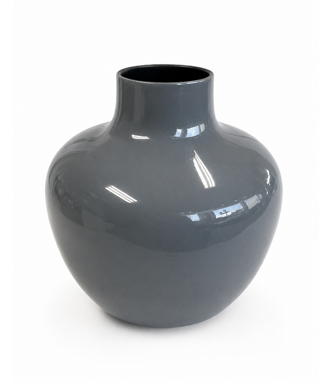 Bring a blend of modern simplicity and industrial charm into your space with this gray enameled metal vase. Designed with a clean silhouette, this piece features a smooth enameled finish that adds a subtle sheen and refined edge.