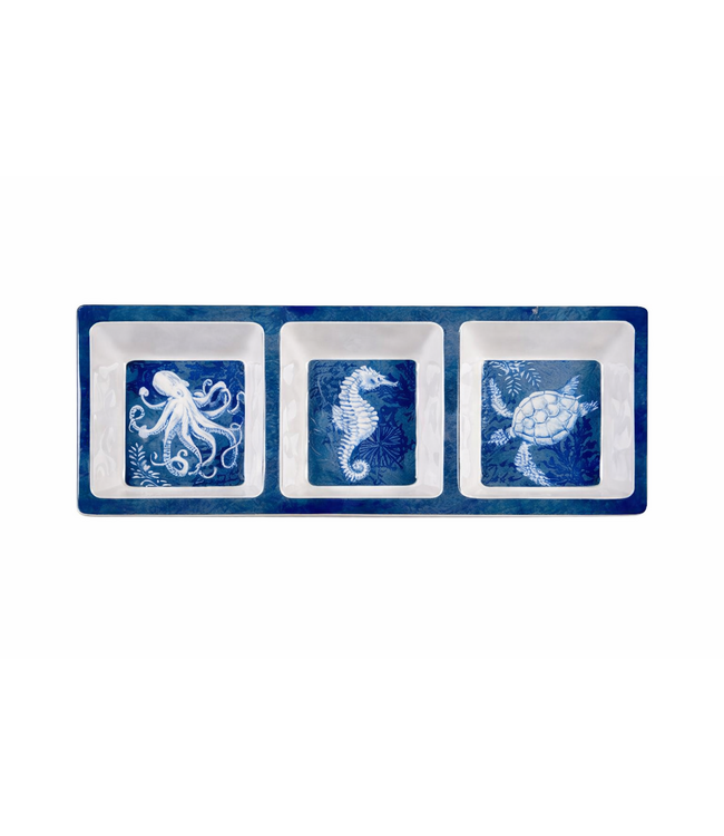 Designed for easy entertaining, the Oceanic 3-Section Relish Tray combines durable performance with coastal-inspired style. Crafted from high-quality, BPA-free melamine, this serving piece offers the look of ceramic while remaining lightweight, shatter-resistant, and easy to handle. The divided design keeps appetizers, snacks, or condiments neatly separated, making it ideal for parties, gatherings, and everyday use.