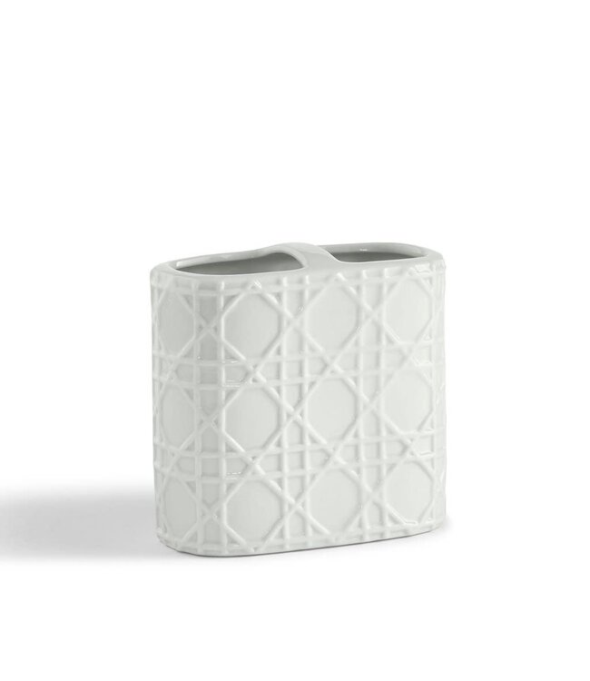 The Rattan Bath Accessories Collection combines embossed porcelain with rattan-i...
