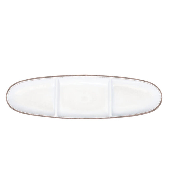 Designed for effortless entertaining, the Rustica Antique White Sectioned Oval Tray combines timeless style with everyday durability. Crafted from high-quality, heavyweight melamine, this serving piece offers the elegant look of ceramic while remaining lightweight, shatter-resistant, and easy to handle. The divided design allows for convenient serving of multiple appetizers, snacks, or side dishes, making it ideal for gatherings, entertaining, or everyday use.