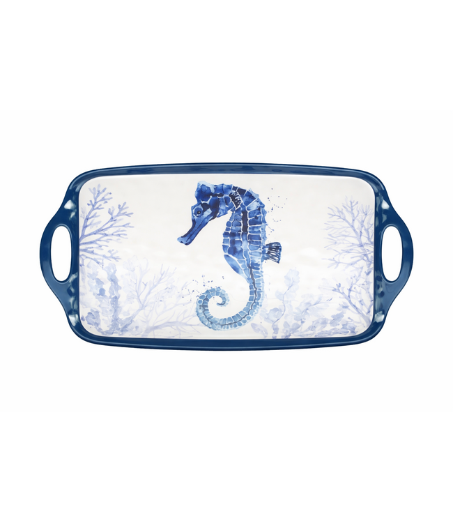 Designed for effortless entertaining, the Certified International Sea Life Melamine Rectangular Tray with Handles combines durability with coastal-inspired style. Crafted from high-quality, BPA-free melamine, this serving tray offers the look of ceramic while remaining lightweight, shatter-resistant, and easy to carry. The integrated handles allow for convenient serving, making it ideal for appetizers, drinks, or shared dishes at both indoor gatherings and outdoor entertaining.