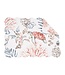 The Shelly Shores table linens provide a coastal escape complete with sketched coral and shells in a coral and blue color palette; reversing to a coral-on-white look offering two coastal looks for your dining space.