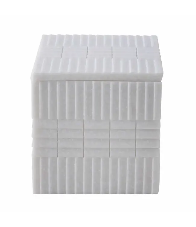 The collection showcases a staggered geometric line pattern, with variations across pieces: the soap dish and tray feature smooth interiors framed by matching ridged exteriors, while the lotion dispenser and tissue holder maintain a sleek, smooth top surface for a refined look. Durable and stylish, these accessories are designed to enhance your daily routine with contemporary elegance. Make sure to check out the rest of the collection!