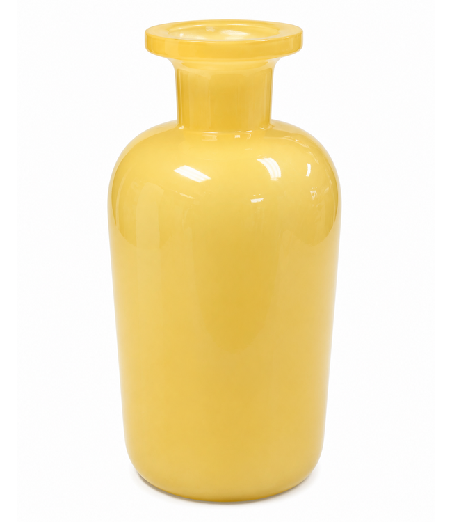 Add a fresh pop of color to your space with this beautifully crafted glass vase. Designed with a classic bottle silhouette, it features a smooth, glossy yellow finish that brings warmth and brightness without feeling overpowering.